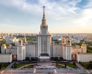 جامعة موسكو الحكومية ( لومونوسوف) تضم أطول مبنى تعليمي في العالم ، ويدرس بها أكثر من 47000 طالب ، وتستقبل 4000 طالب دولي كل عام.