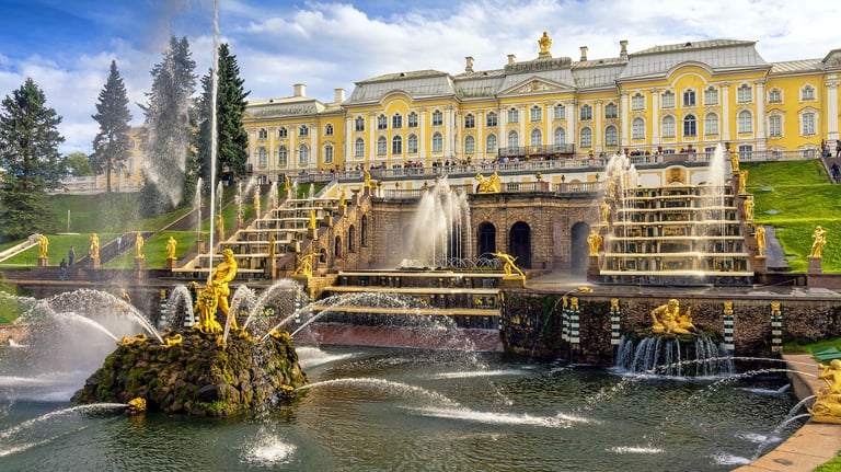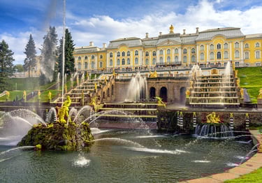 كان قصر بيترجوف الكبير هو المقر الصيفي الرئيسي للقياصرة الروس منذ عام 1752 يقع المبنى في ضواحي مدينة سانت بطرسبرغ بمنطقة بيترهوف على ساحل خليج فنلندا