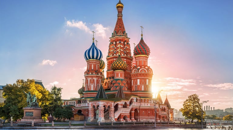 أشهر المباني فى روسيا وهي رمز دولي لمدينة موسكو, تميزها قباب بصلية الشكل ذات ألوان مبهجة
